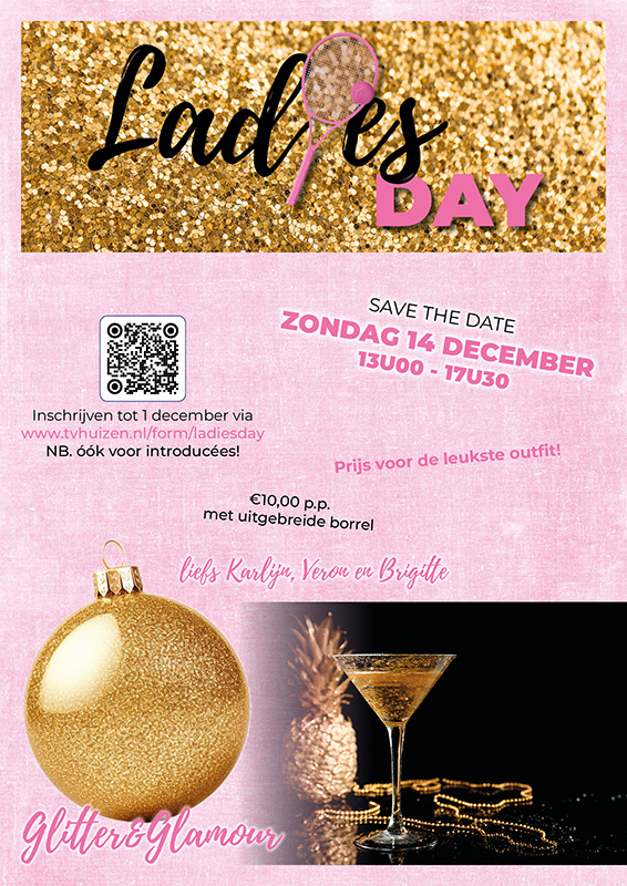 Op zondag 14 december is de Glitter&Glamour Ladiesday bij TV Huizen voor de dames van TV Huizen én hun introducées.